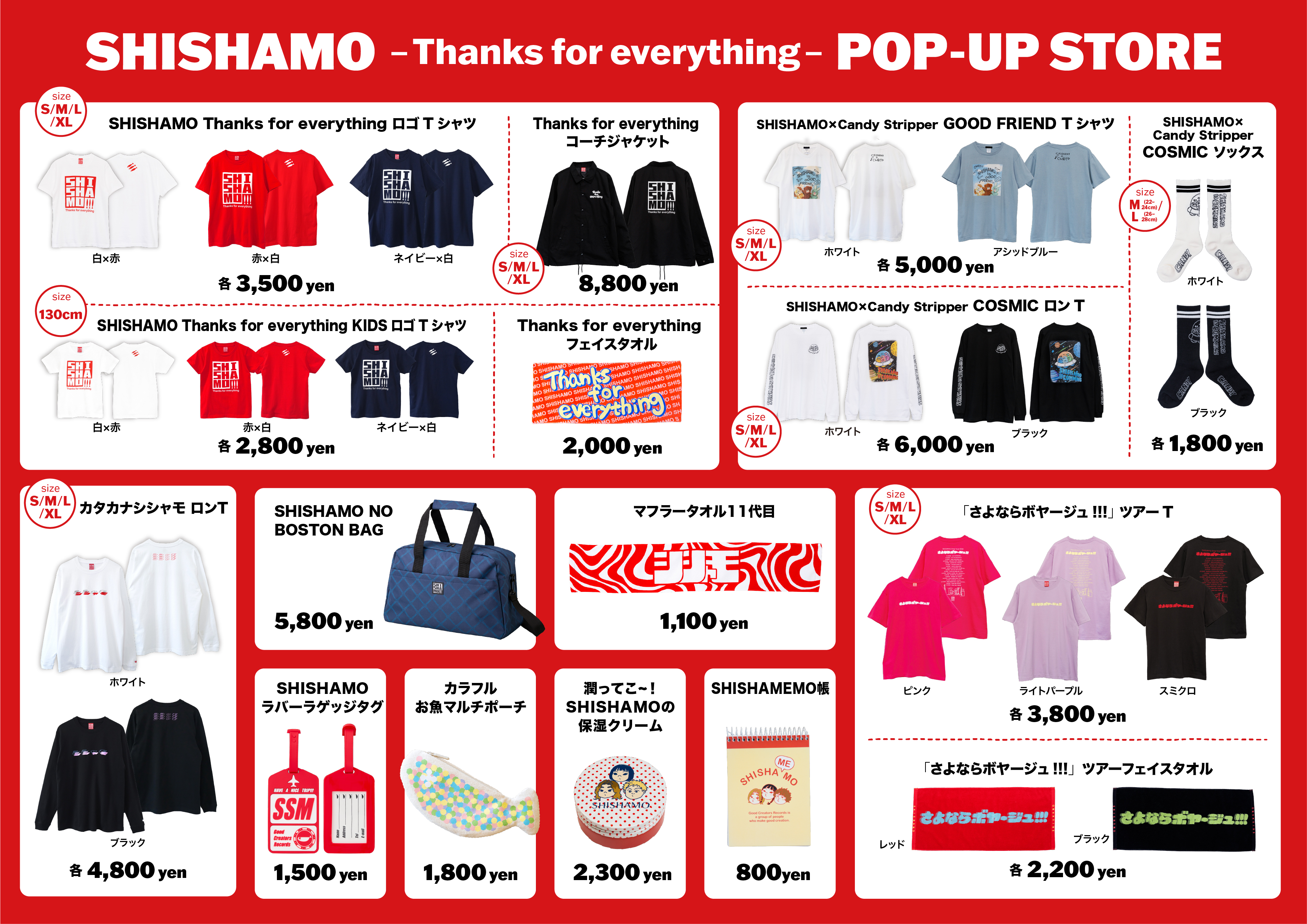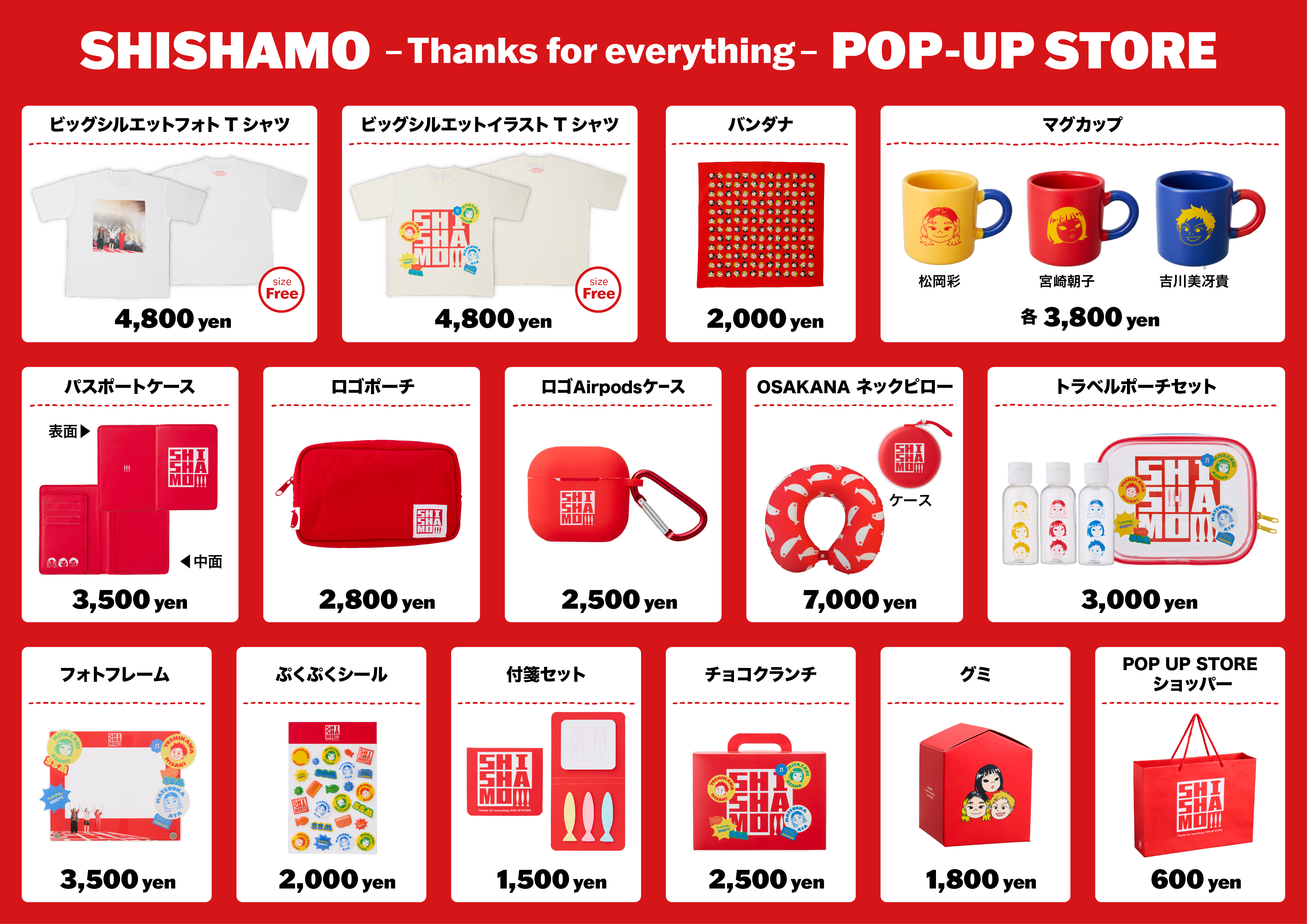 「SHISHAMO -Thanks for everything- POP-UP STORE」限定のオリジナルGOODSに加え、