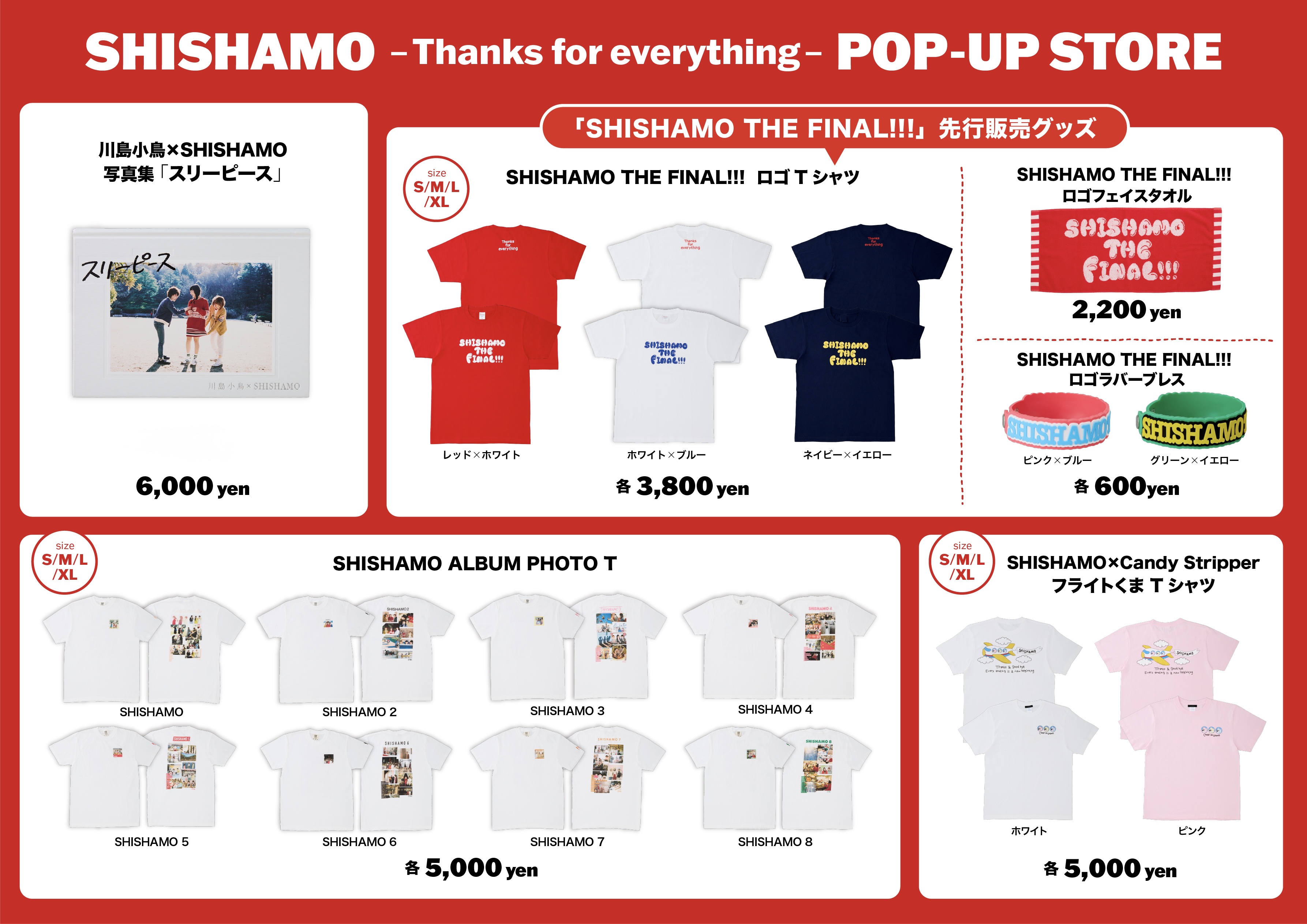 <SHISHAMO 新作GOODS&「SHISHAMO THE FINAL!!!~Thanks for everything~」先行販売GOODS>